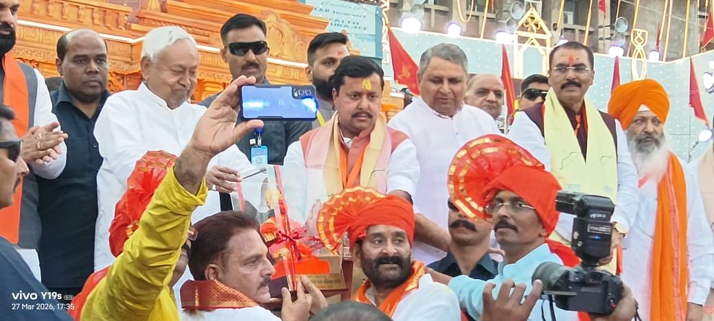 27 मार्च 2026, पटना। हाथी, घोड़े, ऊँट एवं गाजे-बाजे के साथ श्री साईं बाबा की पालकी श्री साईं शिव कृपा मन्दिर, कंकड़बाग परिसर से प्रारंभ होकर कॉलोनी मोड़, चिरैयाटांड ओवरब्रिज, एक्जीविशन रोड, डाक बंगला चौराहा से महावीर मन्दिर, पटना जंक्शन होते हुए वापस साईं मन्दिर पहुंची। अवसर था श्री साईं शिव कृपा मन्दिर न्यास समिति द्वारा श्री साईं शिव कृपा मन्दिर में श्री रामनवमी महोत्सव के छब्बीसवें वार्षिकोत्सव के अवसर पर दो दिवसीय समारोह की शुरुआत के प्रथम दिन आयोजित भव्य शोभा यात्रा सह पालकी यात्रा का । बड़ी संख्या में साईं भक्त इस पालकी शोभा यात्रा में शामिल हुए। साईं भक्तों ने साई बाबा की पालकी जिसमे साई बाबा विराजमान थे को अपने कंधे पर उठाकर नगर भ्रमण कराया I अलग-अलग टोलियों में लोग ॐ साईं राम एवं जय श्री राम का जयकारा लगाते और झूमते-गाते हुए पूरी तरह अनुशासित तरीके से सड़कों पर एक मिसाल कायम करते हुए आगे बढ़ते गए। युवाओं और महिलाओं की बड़ी संख्या शोभा यात्रा की रौनक बढ़ा रही थी।