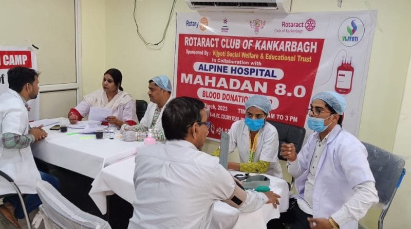 रक्तदान महादान, इस महादान शिविर का आयोजन कंकरबाग स्थित अलपाइन हॉस्पिटल, G-44, पी सी कॉलोनी मे नेशनल ब्लड सेंटर एंड रिसर्च सेंटर के सहयोग से विज्योति सोशल वेलफेयर एंड एजुकेशनल ट्रस्ट के तत्वाधान मे रक्तदान शिविर का आयोजन किया गया। बताते चले के की इस शिविर मे 20 लोगो ने अपना रक्तदान किया।