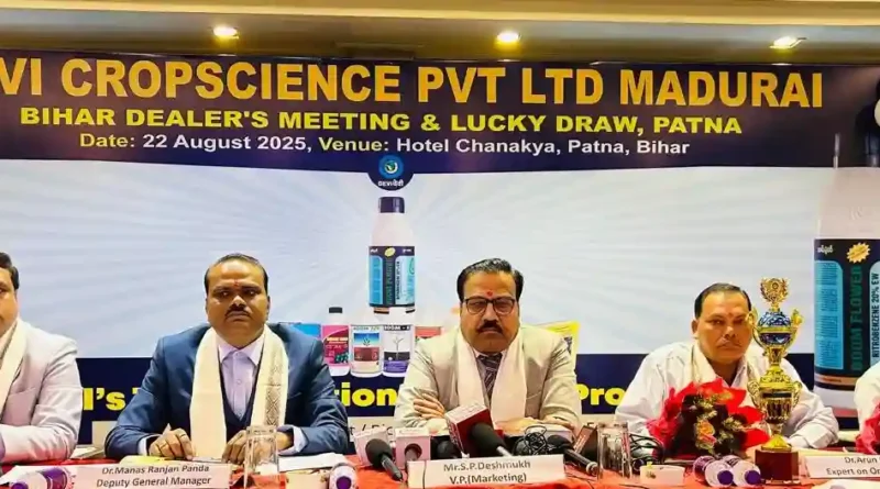 पटना : देवी क्रॉपसाईंस ने वैज्ञानिक रूप से प्रमाणित सीआइबी पंजीकृत एग्रो इनपुट्स की नई श्रृंखला को स्थानीय होटल चाणक्या में आयोजित एक विशेष कार्यक्रम में लॉन्च किया। देवी क्रॉपसाईंस का यह कदम सतत कृषि, अवशेष – मुक्त उत्पादन और किसानों को भरोसेमंद व प्रभावी समाधान उपलब्ध कराने की दिशा में एक महत्वपूर्ण पहल है। इस कार्यक्रम में देवी क्रॉपसाईंस द्वारा बूम फ्लॉवर विक्रेता सम्मेलन सह लक्की ड्रा का आयोजन भी किया गया। कार्यक्रम की शुरुआत देवी क्रॉपसाईंस के उपाध्यक्ष (मार्केटिंग) एस पी देशमुख, निदेशक अंतराष्ट्रीय व्यापार डॉ. एस लोगनाथन, डीजीएम डॉ. मानस रंजन पंडा, क्षेत्रीय प्रबंधक उज्जवल पांडेय, ऑर्गेनिक फार्मिंग विशेषज्ञ डॉ. अरुण मलाकर एवं मायानंद विश्वास ने संयुक्त रूप से दीप प्रज्वलित कर की। देवी क्रॉपसाईंस के उपाध्यक्ष (मार्केटिंग) एस पी देशमुख ने बूम फ्लॉवर कि असाधारण यात्रा साझा करते हुए कंपनी की दृष्टि प्रस्तुत की कि कैसे यह सुरक्षित, पर्यावरण – अनुकूल, और अवशेष मुक्त बायो उत्पादों की विस्तृत श्रृंखला के माध्यम से किसानों को सशक्त बनाएगी। निदेशक अंतराष्ट्रीय व्यापार डॉ. एस लोगनाथन ने बूम फ्लॉवर की वैश्विक सफलता पर प्रकाश डाला।