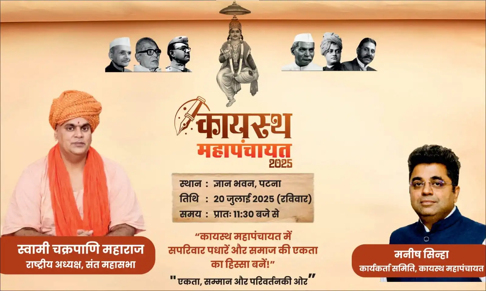 20 जुलाई को पटना के ज्ञान भवन में आयोजित होगी ऐतिहासिक कायस्थ महापंचायत