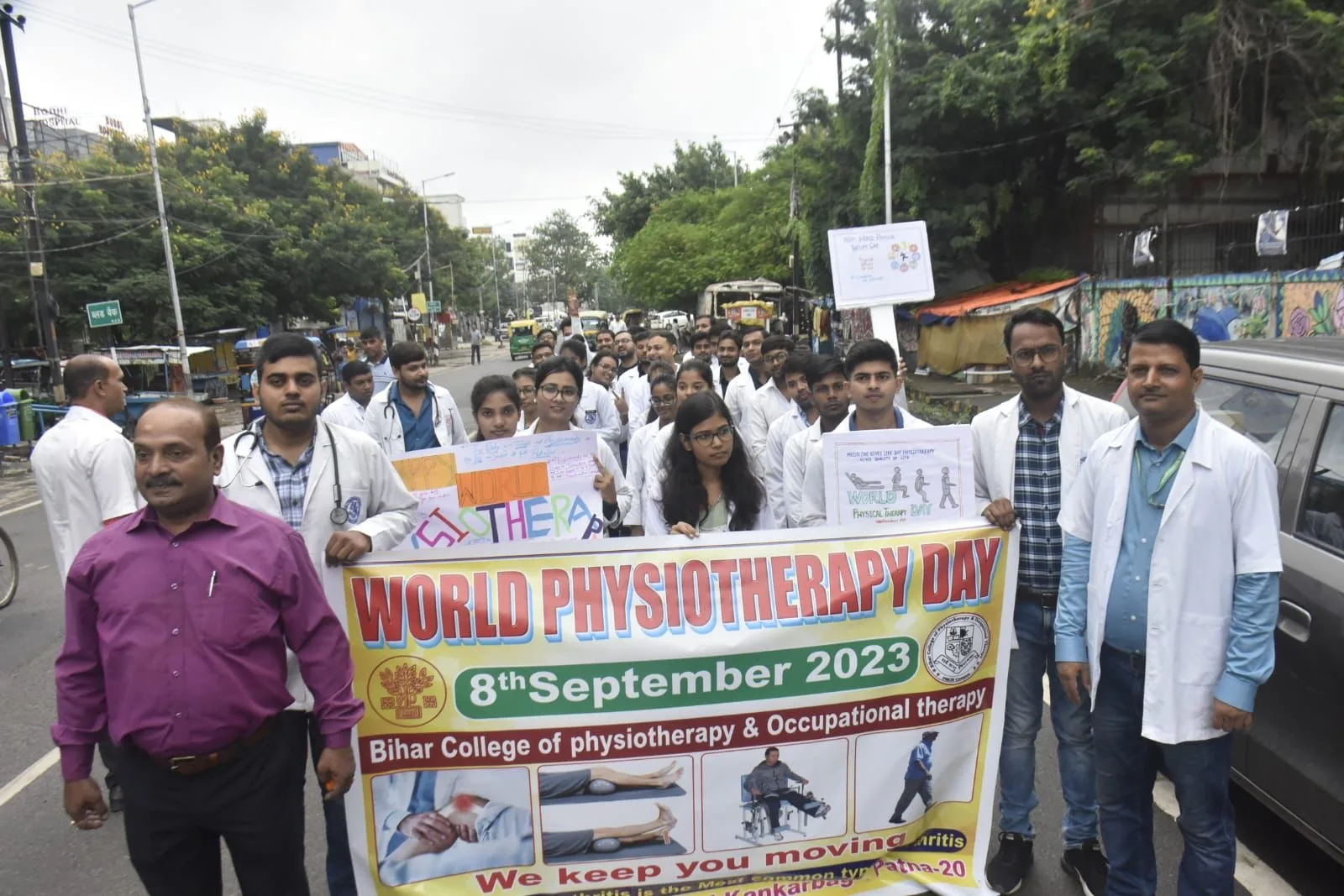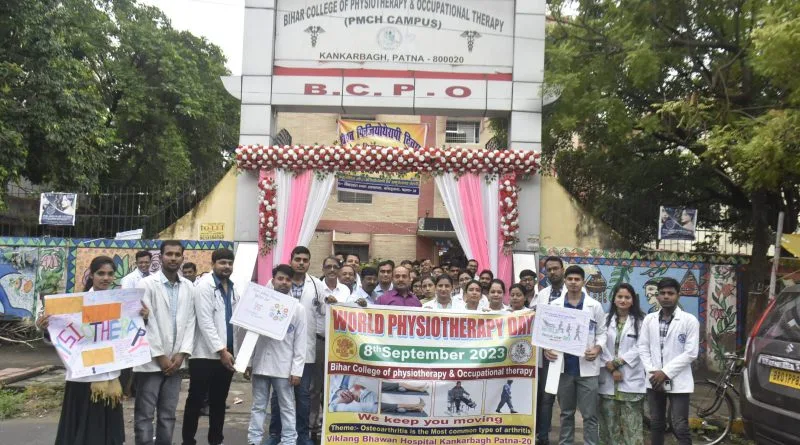 पटना : विश्व फिजियोथेरेपी दिवस के अवसर पर शुक्रवार को कंकरबाग स्थित विकलांग अस्पताल में बिहार कॉलेज ऑफ फिजियोथेरेपी एंड अकुपेशनल थेरेपी पीएमसीएच (परिसर) द्वारा मैराथन सह निःशुल्क स्वास्थ्य जांच शिविर का आयोजन किया गया। इस कार्यक्रम में फिजियोथेरेपी से संबंधित सैकड़ों मरीजगण शामिल हुए। संस्थान के परिसर में नि:शुल्क चिकित्सा शिविर का आयोजन किया गया जिसमें कमर दर्द, घुटाना दर्द, कंधा दर्द, गठिया, लकवा आदि बिमारियों का ईलाज एवं निःशुल्क परामर्श दिया गया।