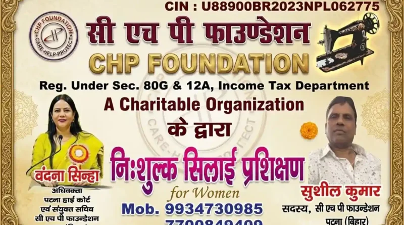 पटना, 1 अप्रैल 2026: समाज में महिलाओं को आत्मनिर्भर और सशक्त बनाने के उद्देश्य से ‘सी एच पी फाउंडेशन’ (CHP Foundation – एक मान्यता प्राप्त चैरिटेबल संस्था) द्वारा महिलाओं के लिए तीन महीने के निःशुल्क सिलाई प्रशिक्षण कार्यक्रम का शानदार आगाज किया गया।