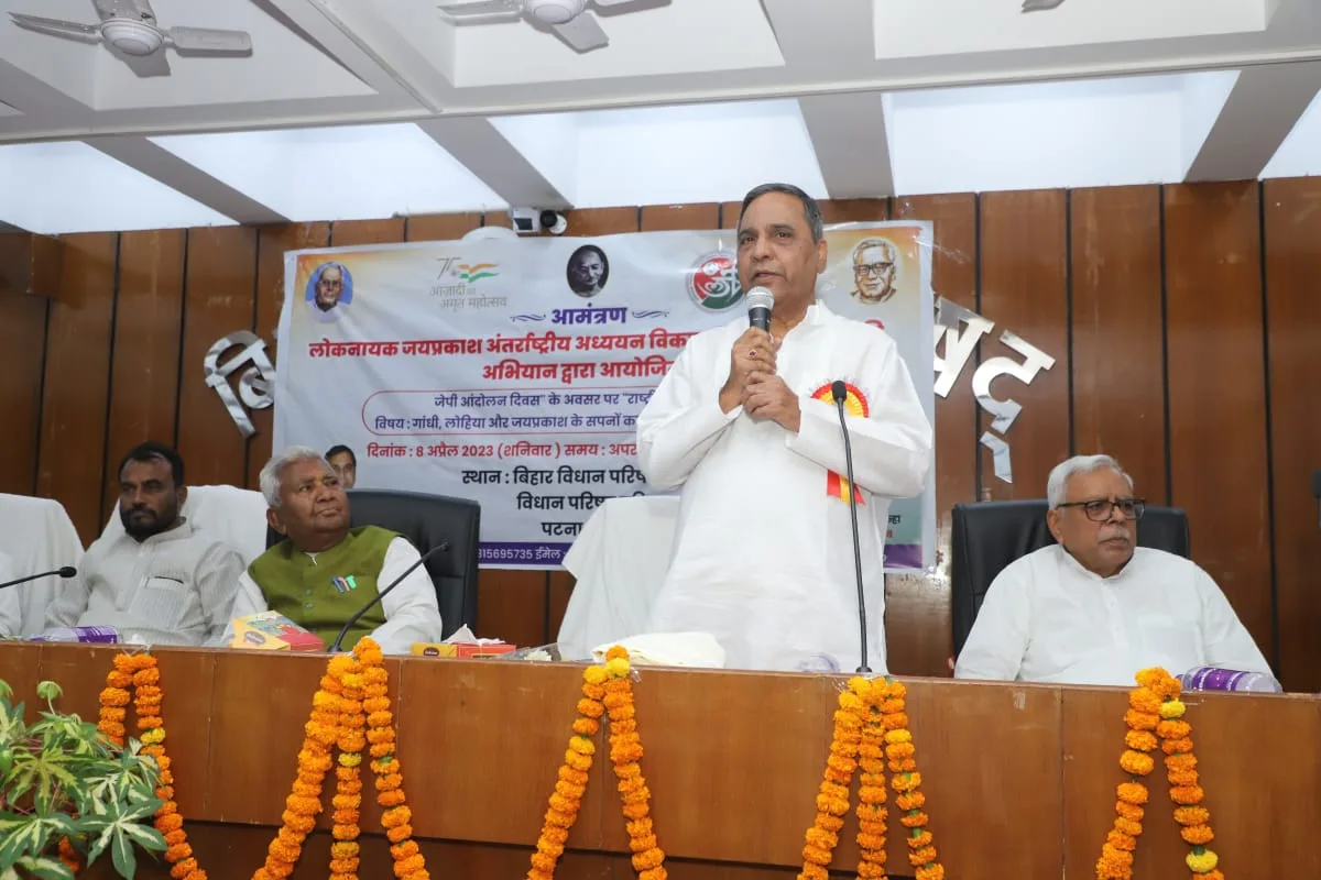 पटना ,लोकनायक जयप्रकाश अंतरराष्ट्रीय अध्ययन विकास केन्द्र एवं संपूर्ण क्रांति अभियान के संयुक्त तत्वावधान में आयोजित जेपी आंदोलन दिवस के अवसर पर विहार विधान परिषद के उप सभागार में मनाई गई । इस अवसर पर विहार विधान परिषद के उप सभापति मुख्य अतिथि के रूप में संबोधित करते हुए कहा कि पूंजीवादी व्यवस्था में लोकवादी परंपरा का होना आवश्यक है । केवल राज्य सत्ता पर निर्भरता लोकतंत्र के लिए खतरा है । उन्होंने कहा कि समाज के बीच काफी विषमता है , जिसे दूर करना आज़ के परिप्रेक्ष्य में जरूरी है ।