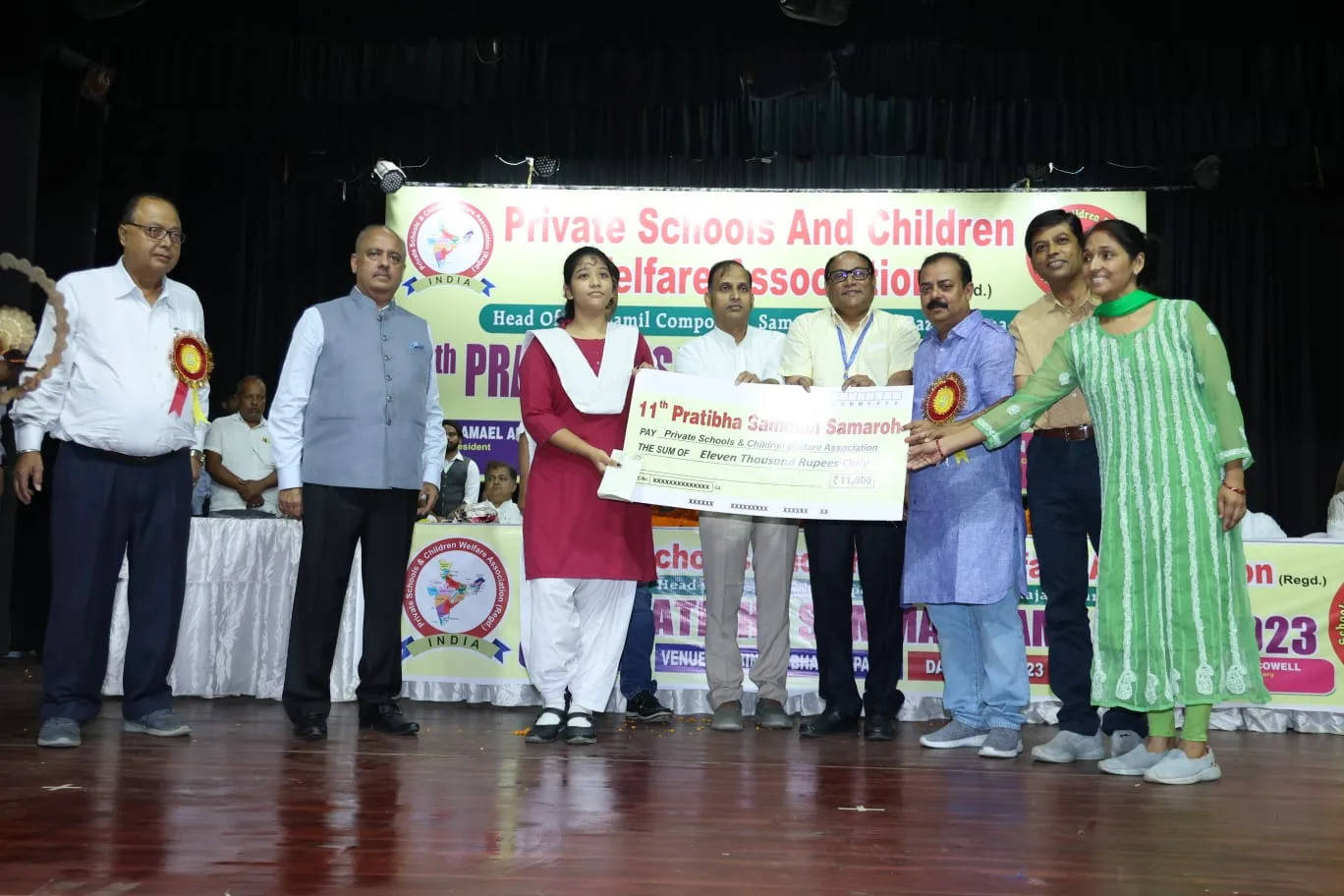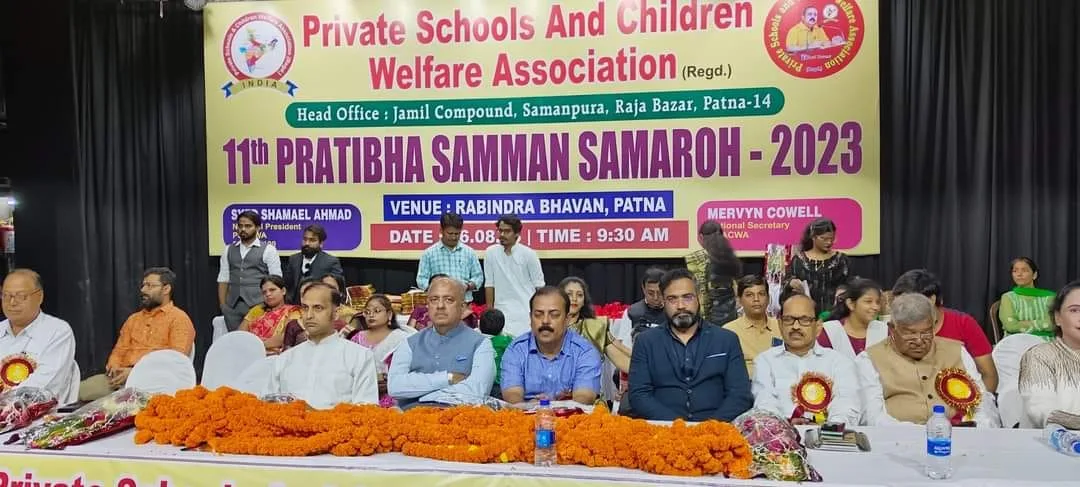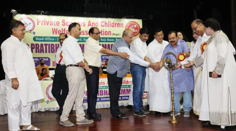 आज दिनांक 26/08/2023 (शनिवार) को प्राइवेट स्कूल्स एंड चिल्ड्रन वेलफेयर एसोसिएशन के तत्वाधान में 11वे प्रतिभा सम्मान समारोह का भव्य आयोजन बीर चंद पटेल पथ स्थित रविंद्र भवन के सभागार में आयोजित किया गया। इस समारोह का उद्घाटन समारोह के उद्घाटनर्कता एवं रोटरी वर्ल्ड प्रेसिडेंट रोटेरियन श्री शेखर मेहता 2021-22, वरिष्ठ आईएएस ऑफिसर श्री देवेश सेहरा, श्री शफी उल हक,आईपीएस डीआईजी, पसावा के राष्ट्रीय सलाहकार फादर पीटर, सेंट माइकल हाई स्कूल के प्राचार्य फादर क्रिस्टो एवं एसोसिएशन के राष्ट्रीय अध्यक्ष शमायल अहमद, के द्वारा दीप प्रज्वलित कर किया गया।