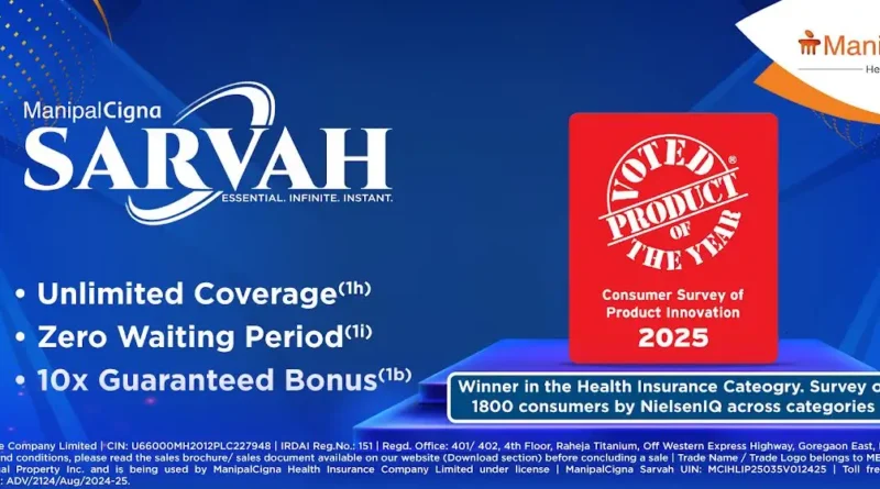 मणिपाल सिग्ना सर्व: को हेल्थ इंश्योरेंस कैटेगरी में मिला ‘प्रोडक्ट ऑफ द ईयर 2025’ का सम्मान
