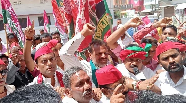 सीओ भू-माफिया गठजोड़ को लेकर अंचल कार्यालय पर सपा ने हल्ला बोला