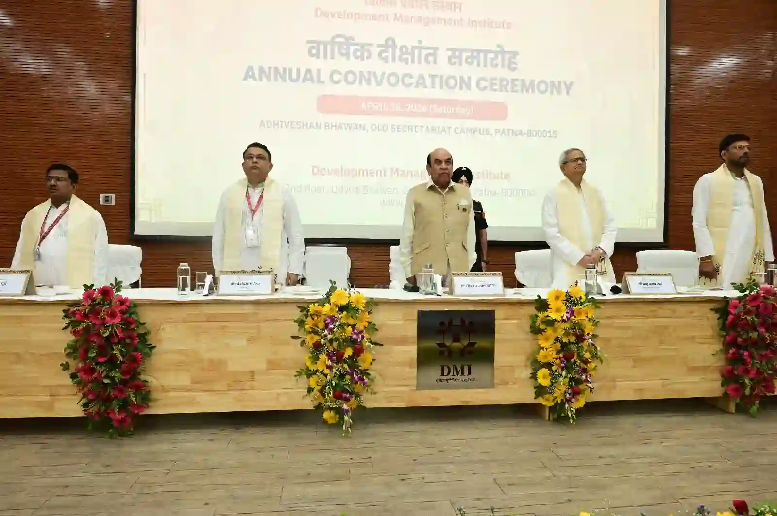 पटना : विकास प्रबंधन संस्थान (डीएमआई) का दीक्षांत समारोह शनिवार को पुरानी सचिवालय स्थित अधिवेशन भवन में हुआ। मुख्य अतिथि राज्यपाल लेफ्टिनेंट जनरल सैयद अता हसनैन (सेवानिवृत्त) पीजी डिप्लोमा (डीएम) सत्र 2024-2026 में उत्तीर्ण छात्र-छात्राओं को पोस्ट ग्रेजुएट डिप्लोमा इन मैनेजमेंट की उपाधि दी। निदेशक प्रो. देबीप्रसाद मिश्रा वार्षिक रिपोर्ट प्रस्तुत किए। समारोह की अध्यक्षता डीएमआई बोर्ड ऑफ गवर्नर्स के अध्यक्ष सेवानिवृत्त आइएएस भानू प्रताप शर्मा ने की। विशेष रूप से डिजाइन किया हुआ कुर्ता-पायजामा, अंगवस्त्रम और चप्पल में सभी विद्यार्थी दीक्षांत समारोह में भाग लिए। 50 विद्यार्थियों को उपाधि प्रदान की गई। संस्थान की वेबसाइट पर उपलब्ध लिंक के माध्यम से समारोह का लाइव प्रसारण भी किया गया। ग्रामीण विकास विभाग के प्रभारी सचिव हिमांशु शर्मा ने विद्यार्थियों को बिहार में ग्रामीण विकास की स्थिति से अवगत कराए। मौके पर डीएन एकेडमिक प्रो. शंकर पूर्वे तथा बोर्ड ऑफ गवर्नर्स के सदस्य मौजूद थे। विद्यार्थियों के साथ उनके माता-पिता व स्वजन भी कार्यक्रम में शामिल हुए।