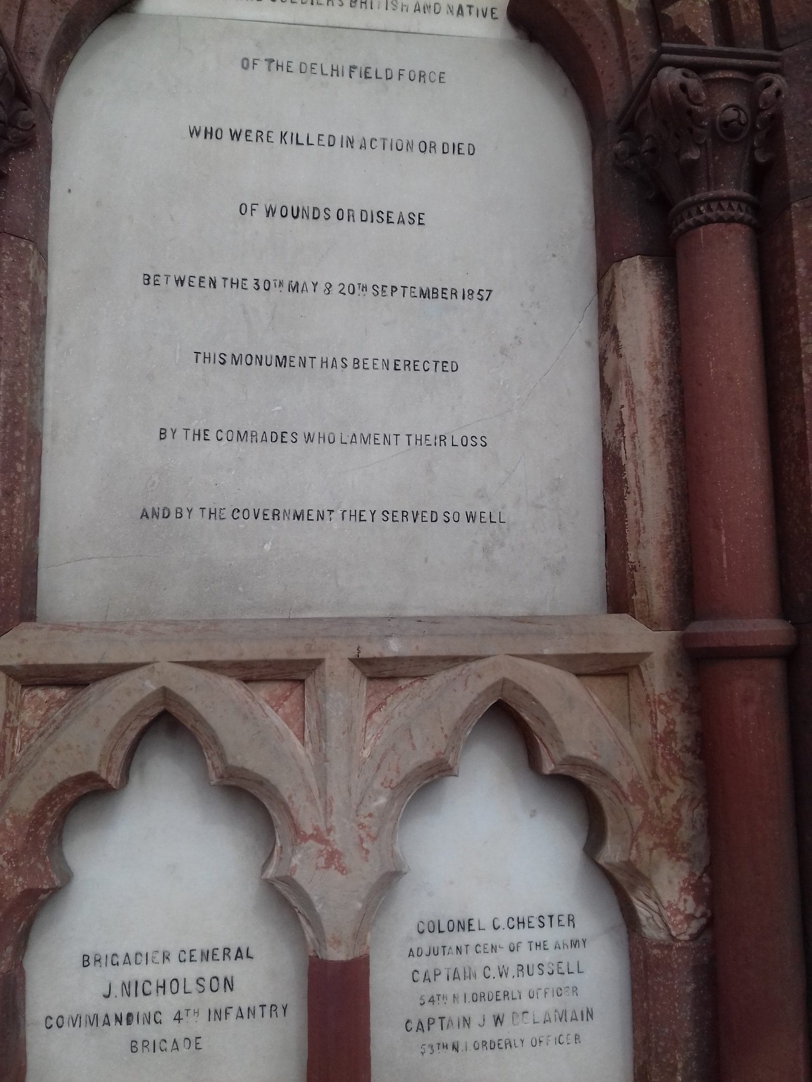 यह मीनार बाहर से अष्टभुजाकार आकार में और अंदर से शंतुल आकर में है.इस मीनार का निर्माण दिल्ली फील्ड फोर्स के सैनिक कार्रवाईयों के दौरान मारे गए और 30 मई से 20 सितंबर 1857 के मध्य मृत और घायल सैनिकों की स्मृति में वर्ष 1863 में किया गया था. इसकी दीवारों पर इन सबके नाम अंग्रेजी,हिंदी और उर्दू में खुदे हुए हैं.